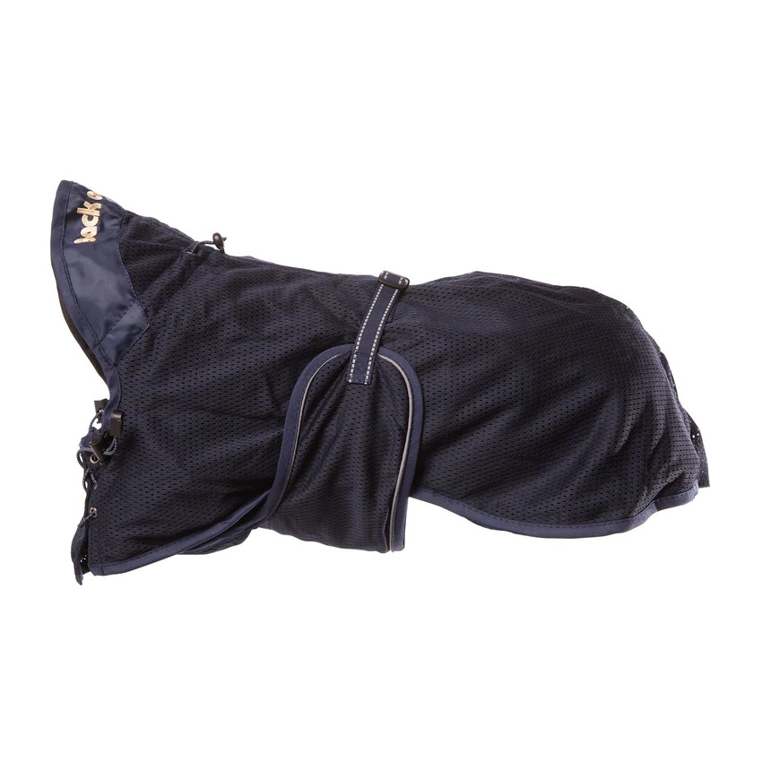 Verkkotakki on säädettävissä optimaalisen istuvuuden saavuttamiseksi. Varustettu heijastavilla yksityiskohdilla molemmin puolin parantamaan näkyvyyttä ja turvallisuutta. Takana vetoketju koirille, joilla on korkea häntä. Tyylikäs muotoilu, jossa kullalla brodeerattu Back on Track -logo kauluksessa.
