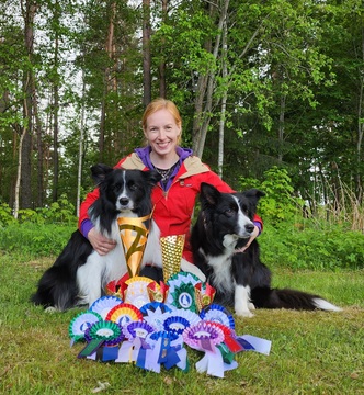 Kaksi bordercollieistani on aktiivisessa treenissä päälajina pk-jälki. Lisäksi kierrän näyttelyissä aktiivisesti näiden kanssa.